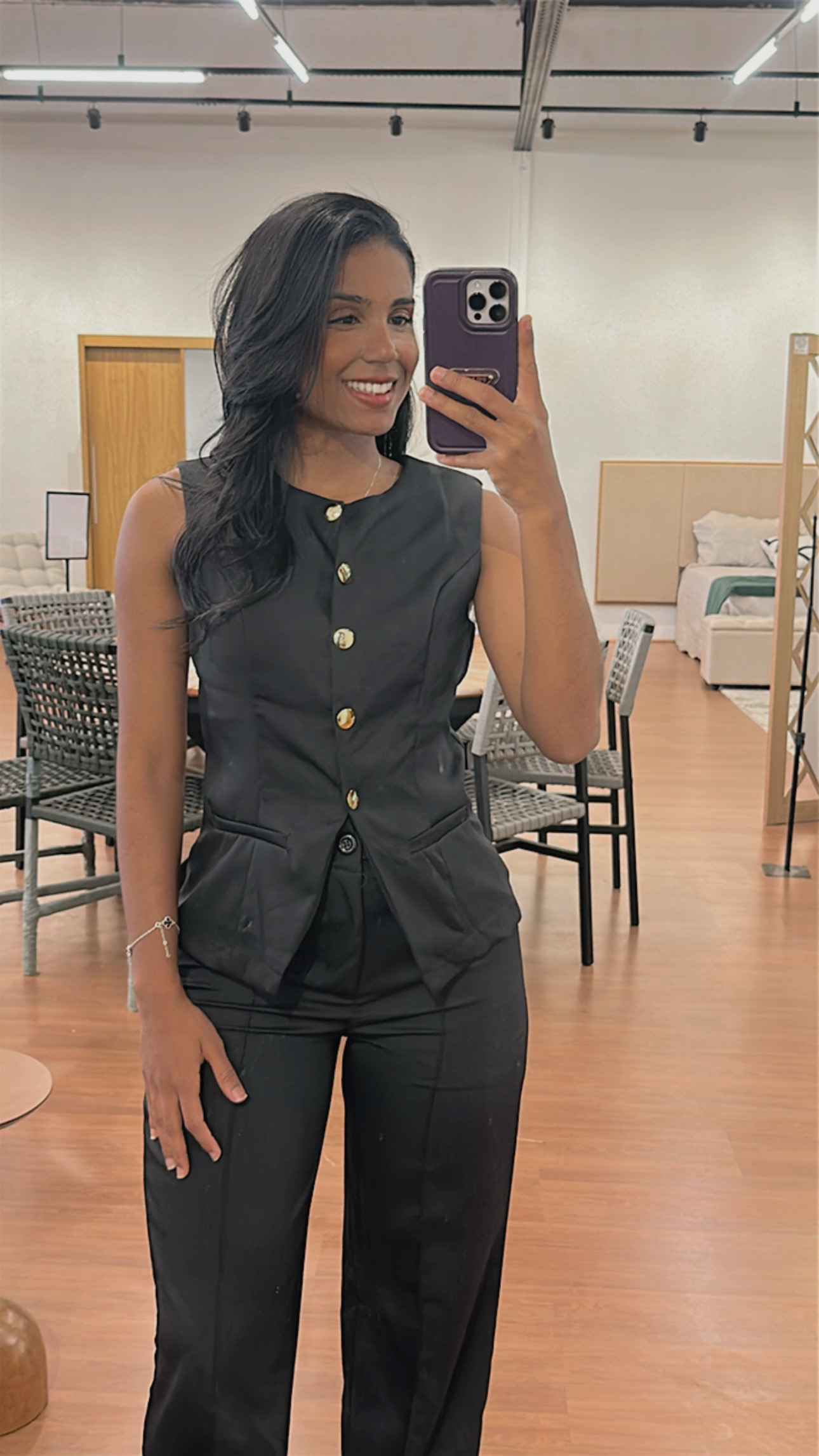 Descubra a elegância do Conjunto Luz em Alfaiataria, perfeito para mulheres que buscam sofisticação e conforto. O conjunto é composto por um colete de manga curta e uma calça de corte impecável, garantindo um caimento moderno e versátil.